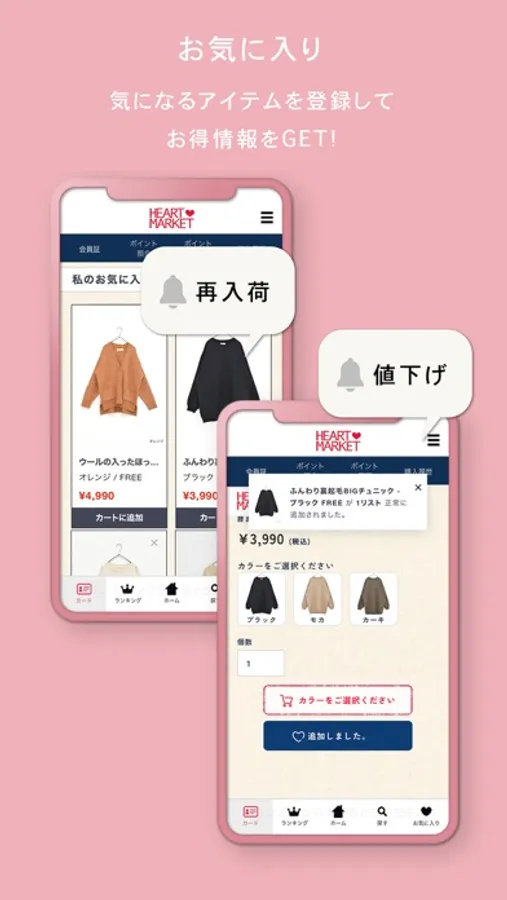 気に入った商品を登録する事の出来る「お気に入り登録ページ」をご覧頂けます。