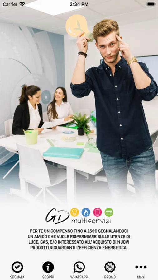 Ti piacerebbe avere una fonte di reddito aggiuntivo con una semplice segnalazione? Grazie alla nostra applicazione gratuita potrai guadagnare segnalando amici, conoscenti ed aziende che vogliono avere gratuitamente un consulente dedicato per le loro utenze di luce, gas o che vogliono acquistare dei beni di efficienza energetica (climatizzatore, caldaia e fotovoltaico) che gli permetta di ridurre i consumi e i costi. Tramite la mia APP potrai tenere traccia delle segnalazioni, verrai aggiornato sul loro andamento fino a quando riceverai la notifica che puoi ritirare il tuo compenso.