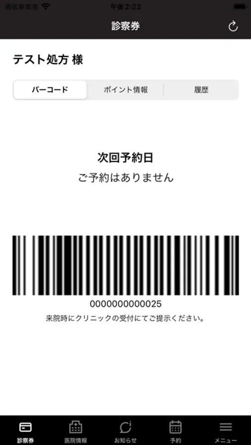 次回ご予約日時表示など、カードレスな診察券としてご活用頂けます。