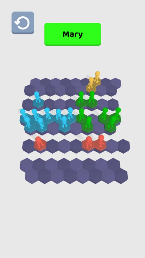 Just select a character you want to move and then either create a clone into the neighbor cell or jump into 2-step distanced cell. Everybody around the cell you moved in will turn into your color!