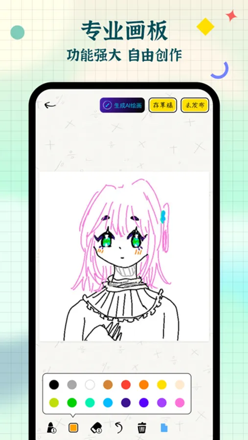 异步接画玩法,基于上一位玩家画作继续二次创作,添一笔变神作,也可帮忙填色、帮你重新捏脸蛋儿,一眨眼换画风,“时代更迭”超乎想象,你敢信这还是你的画?