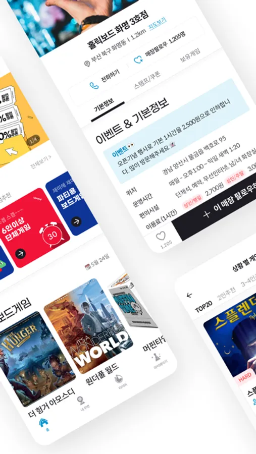 - 이벤트/쿠폰 : 미어캣 제휴 보드게임카페라면, 특별한 할인쿠폰과 이벤트 혜택이 있을지도 몰라요! 지금 이벤트 중인 매장에서 미어캣 어플을 보여주세요!