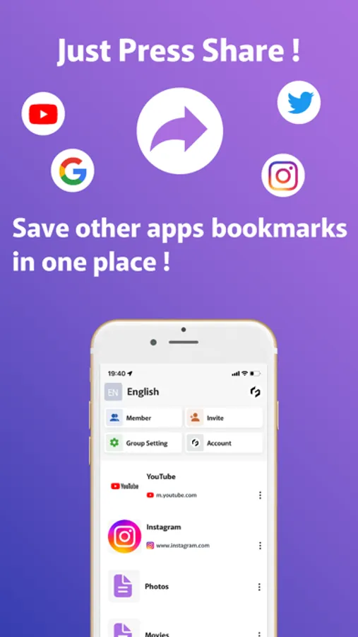 Just press share button from other app then you can manage favorites contents across app in WeClo.
