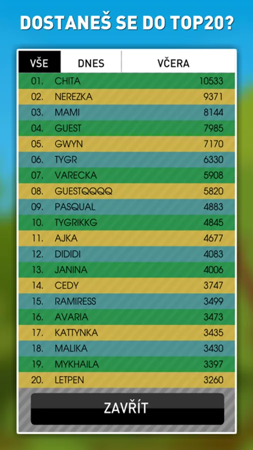 * Tabulka TOP20 - porovnej svoje body s ostatnimi lidmi
