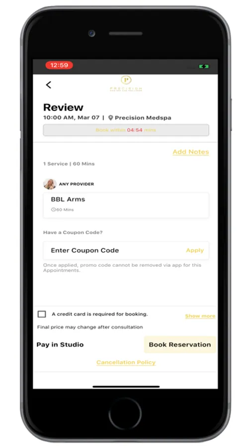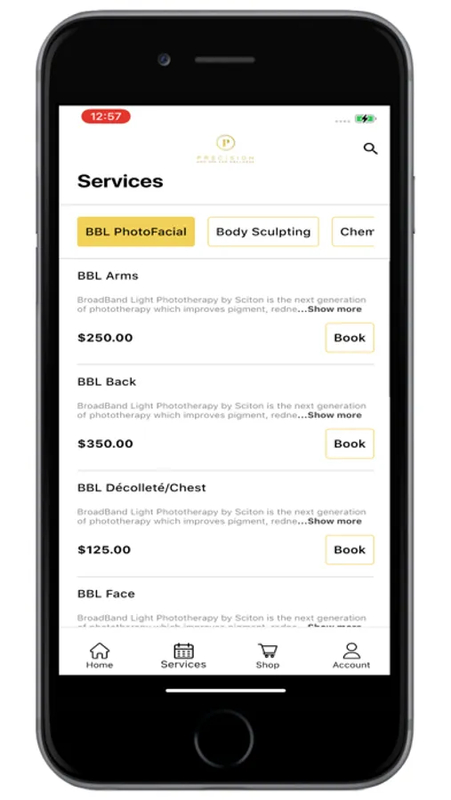 Welcome to the Precision Med Spa App, where you can easily login to your account, schedule and modify appointments, utilize touchless check-in, purchase retail products, directly message and contact us, complete digital forms, and more!