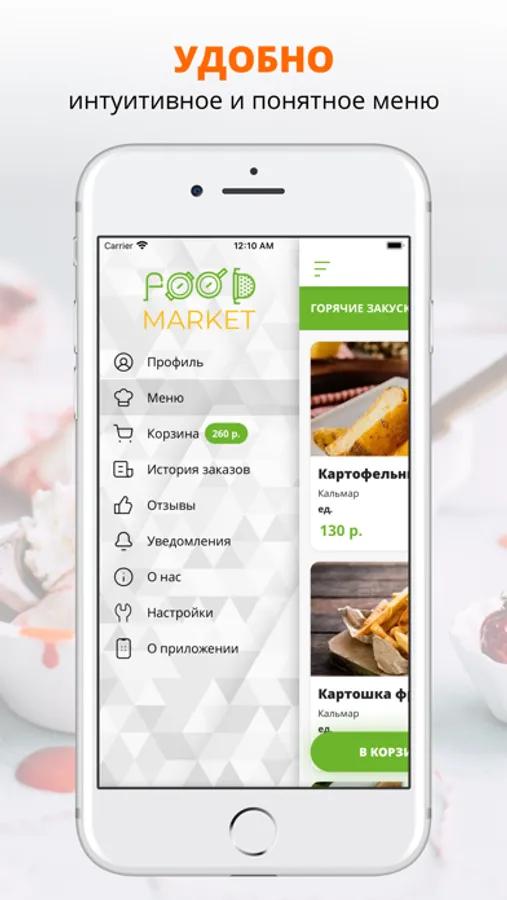 Воспользуйтесь удобным приложением для заказа еды «FOOD-market».