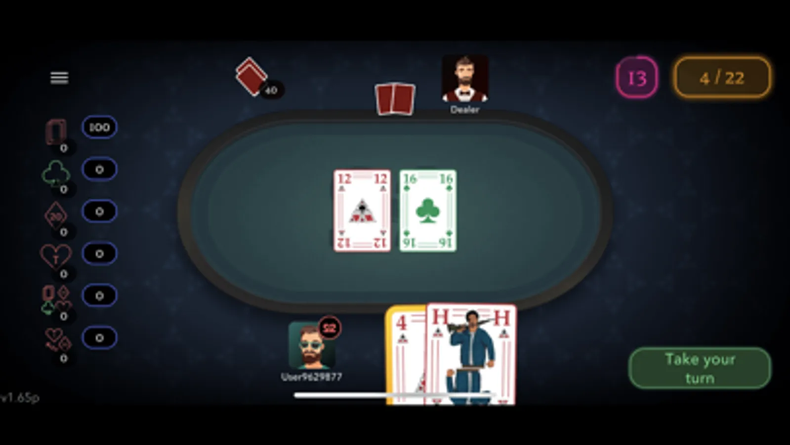 «22GAME» is an author's game with unique rules and an original deck. Players replenish the pot and play it among themselves. The winners will be determined based on the results of completing five different goals in the game, which ultimately increases the chances of getting your part of the pot. In «22GAME», the result will be more determined by the player's skill and strategy, not just luck. Play both with other users and against the dealer.