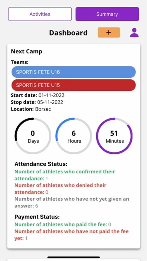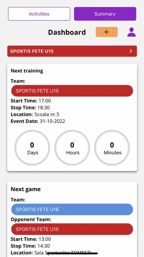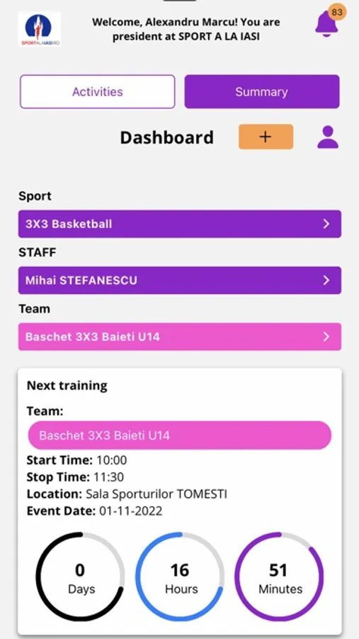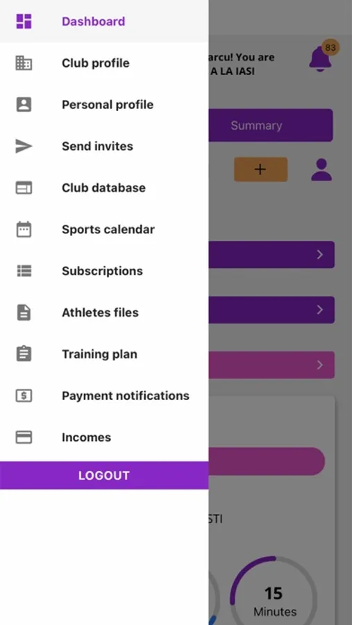 • Sport Calendar (trainings, games, tournaments, camps, listed by month/week/day) with push notifications flow regarding: reminders, modifications, payments, attendance, evaluations.