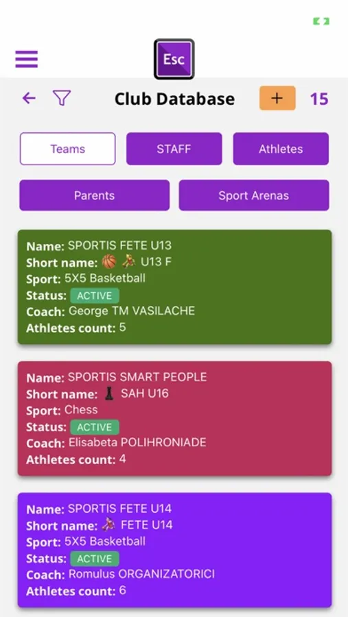 ESC is a smart cloud application for mobile, designed for the sports clubs worldwide (without limits regarding numbers of athletes or sport branches the club owns). Is also a web-based cloud application which allows fully access from all types of devices.