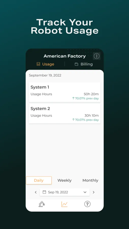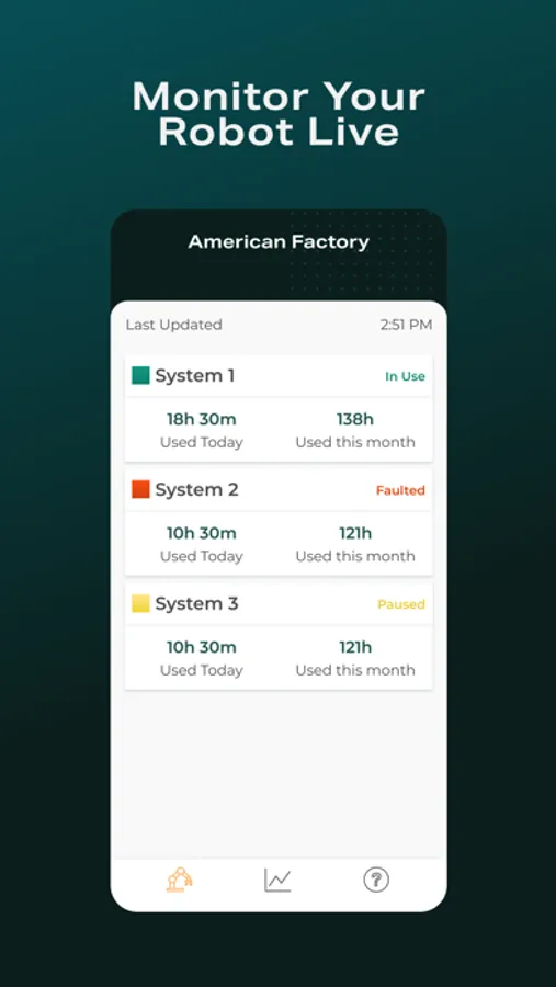 Directly on the shop floor, sitting in your office, or from the comfort of your home, you can track your system status, review your usage, track your billing, and even watch a live video feed of your robot(s) boosting your manufacturing productivity.