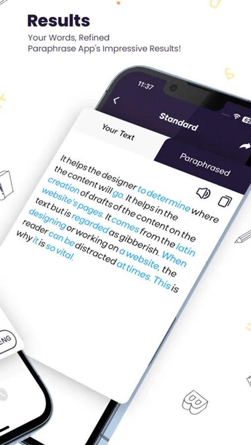 The paraphrasing app adds synonyms to the selected text without altering the real meaning of the sentence. The app selects the best synonyms from its rich vocabulary and provides much better results than the original.