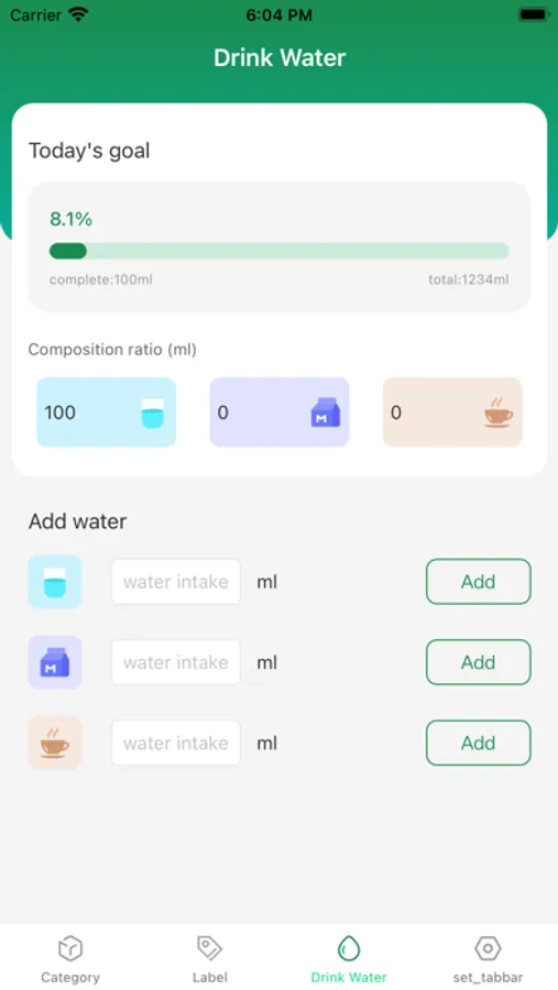The drinking water recording function is more convenient to use. You just need to set a daily goal first, and then record the amount of water you have drunk after each drink.