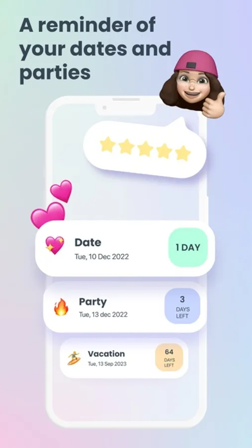 Countdowns will help you count down the time until the event you are waiting for, whether it's a date or a party or a new Apple presentation!