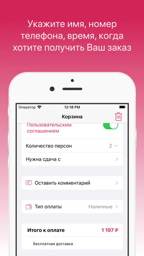 На экране заказа добавьте свою контактную информацию для первого заказа: Имя, Номер телефона и адрес электронной почты, чтобы получать уведомления об оплате.