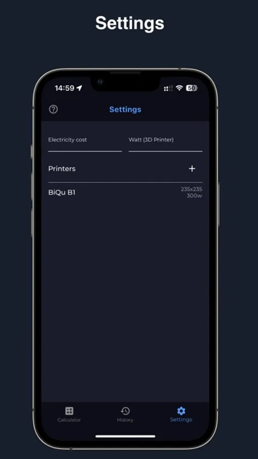 Manage multiple printers from the settings screen and select the printer when performing cost calculations