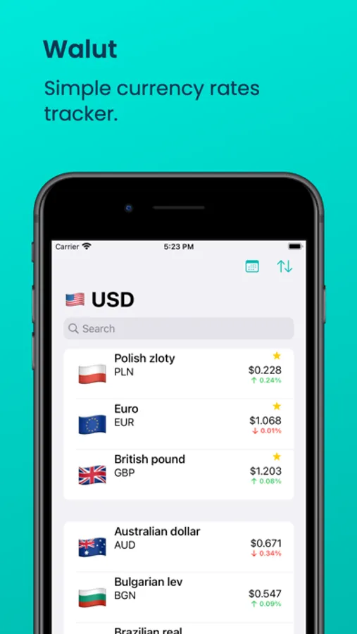 Walut allows you to quickly check how much will something cost in your local currency. Data is automatically updated, refreshed and displayed to you in this beautiful native design.