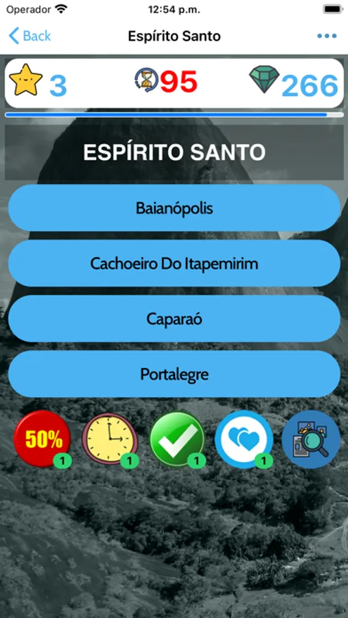 É um jogo de perguntas e resposta sobre as cidades. O jogo é bem simples, você deve responder qual cidade faz parte do Estado escolhido ou de qual cidade faz parte o Ponto Turístico da foto. Quem responde mais rápido ganha mais ponto. O máximo de pontos que se pode ganhar por pregunta são 100 pontos e ao errar, se perdem 30 pontos.