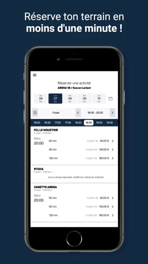 Fini la corvée de réservation ! Avec l'application tu n'as plus qu'à accéder aux créneaux disponibles et à en choisir un. Le club recevra alors automatiquement ta réservation.