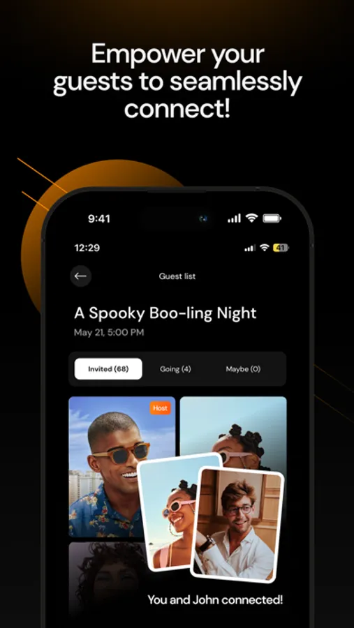 The guest is then able to RSVP to the event. Once they do so, each guest that fits their criteria will appear in a grid format.