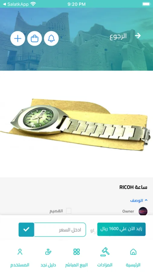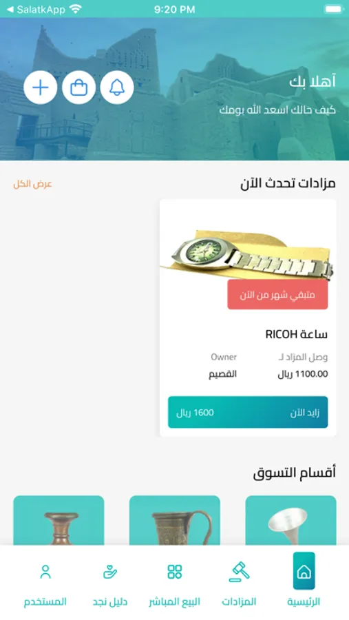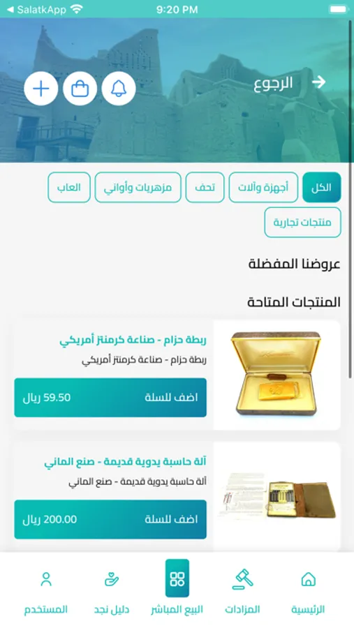 بوابه نجد لكل ما يخص التحف التراثيه القديمه حيث يقام مزاد لعرض ذلك التحف كما يتيح لمقدم الخدمه عرض منتجاته بسهوله ووضوح