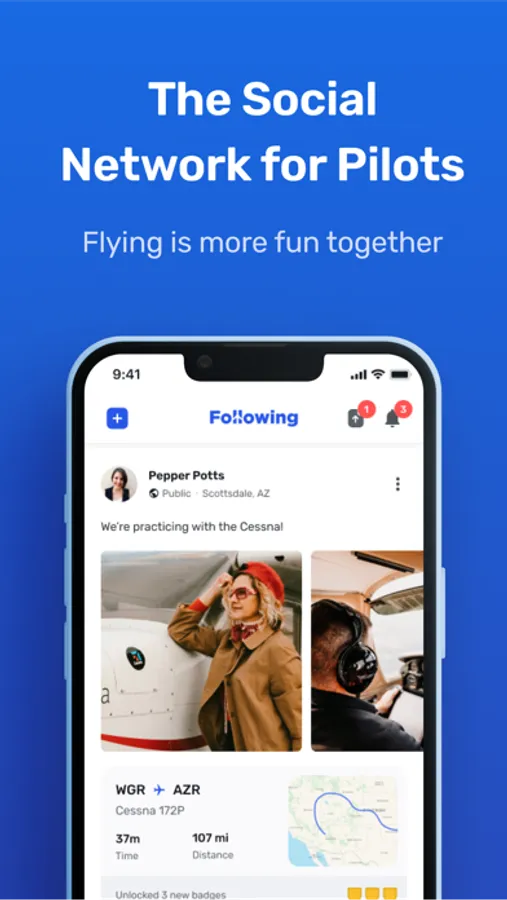 Following is a social network for pilots. Share your flights with your friends and connect with people at your local airport.