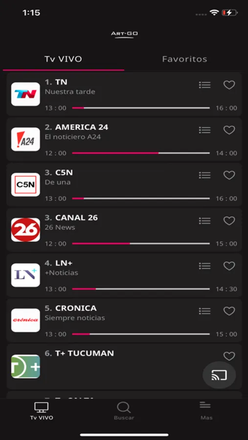 - Retroceder programación de la guía 24 hs y ver programas anteriores.