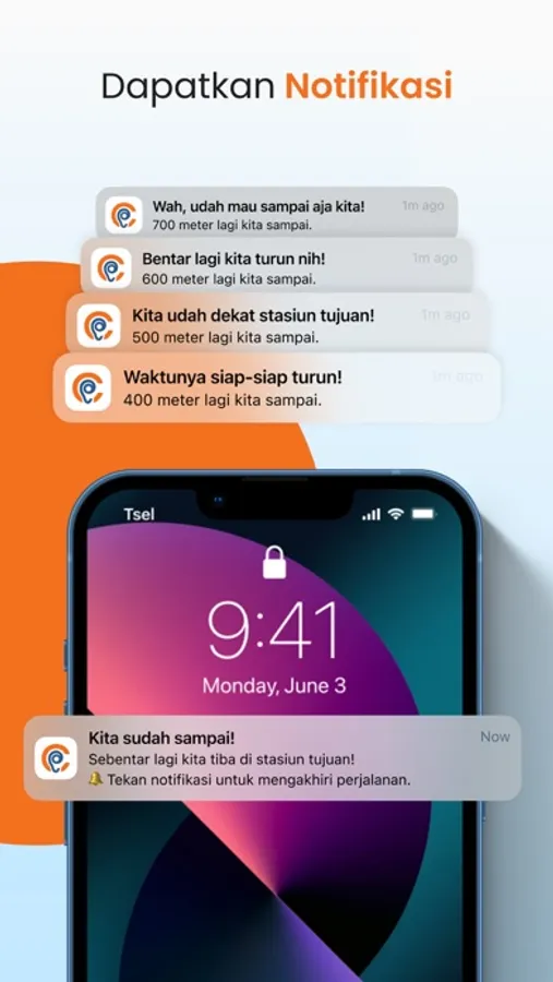 DAPATKAN NOTIFIKASI - Jangan khawatir kelewatan stasiun, karena Comute akan memberi tahu jika kamu harus turun di stasiun transit atau tiba di stasiun tujuan.