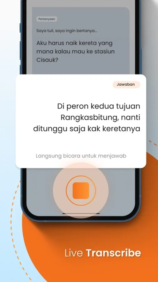 BANTUAN KOMUNIKASI - Ingin bertanya ketika sedang dalam perjalanan tapi bingung dan sulit berkomunikasi dengan teman Dengar? Cukup memilih atau mengetik pertanyaan, lalu dapatkan jawaban lawan bicara kamu menggunakan fitur live transcribe.