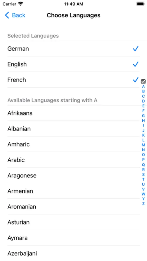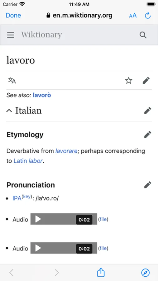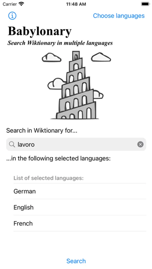 Babylonary is an app for consulting the online dictionary "wiktionary.org". Wiktionary is available in many different language versions: For example, "de.wiktionary.org" exists as a German version or "en.wiktionary.org" exists as an English version. Each of these versions tries to be a dictionary of all languages of the world in its own language. However, the individual versions are very different in scope, so that the information is different or often not available at all. Therefore, Babylonary allows you to query several Wiktionary versions simultaneously, i.e. in your native language and in foreign languages that you understand. You can specify the Wiktionary versions to be queried under "Select languages".