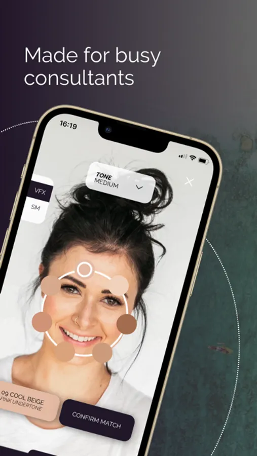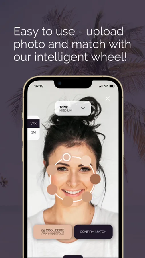 Foundation Finder is developed for your ease of use - helping detect your client’s tone while creating the best possible shade match. To start, just upload a photo of your client. Once your client’s image has processed, Makeup Matchers algorithm goes to work and creates the Dynamic Color Wheel based on facial skin tone recognition. The Dynamic Color Wheel allows for quick palette melting.