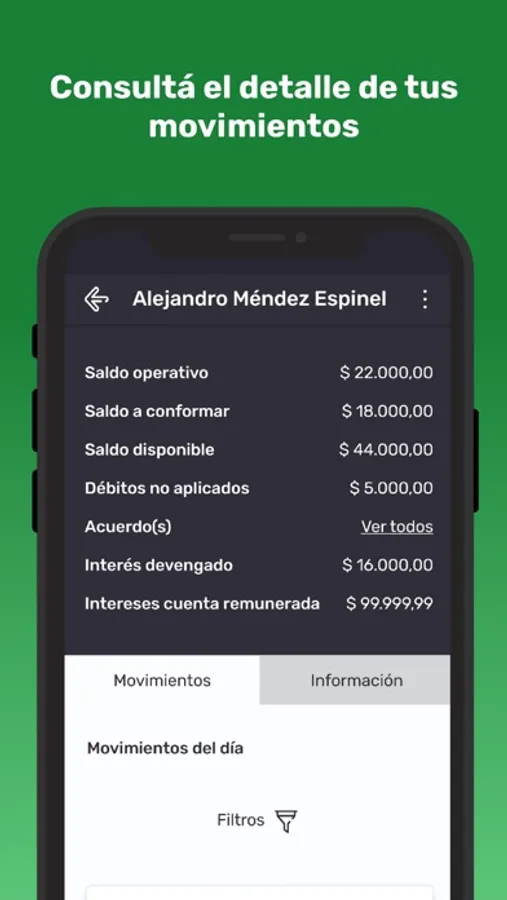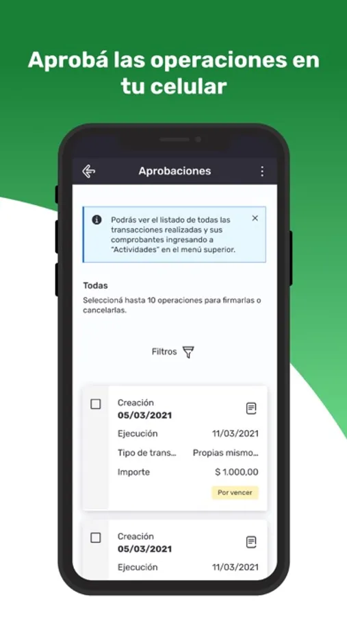 ⎈Aprobaciones: Consultá y firmá todas las operaciones que requieran tu autorización de manera fácil y segura.