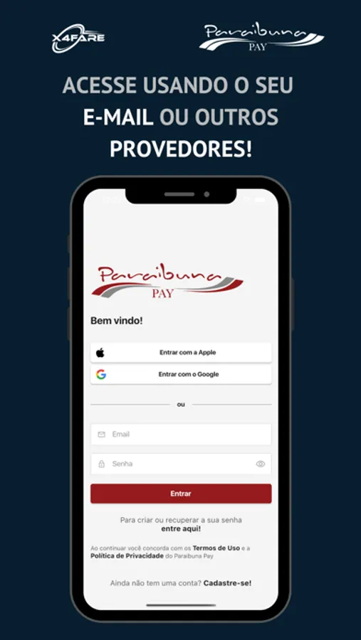LOGIN COM O SEU E-MAIL OU E-MAIL DA APPLE