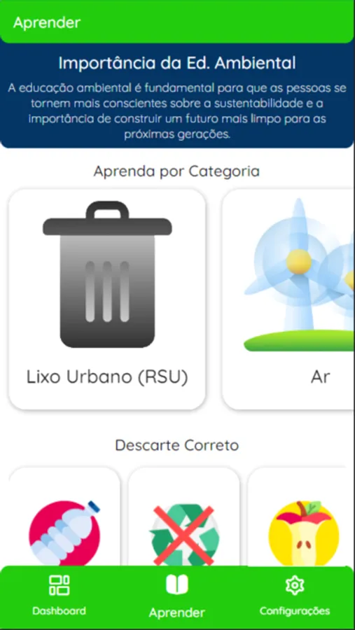 No EduAmb você pode descobrir e aprender a forma correta de descarte para vários tipos de lixo diferentes, como também ver publicações de empresas parceiras sobre vários temas da.
