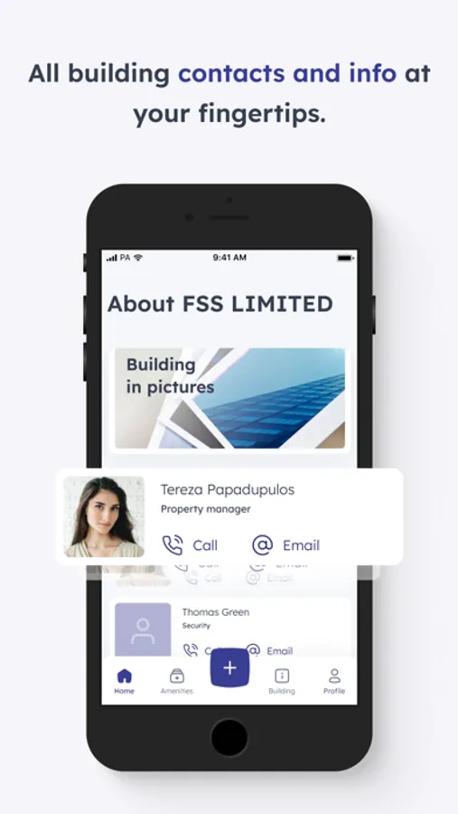 This application is intended not only for employees that work in FSS LIMITED but for their visitors as well. Important information about the building is organized on the dashboard, which dynamically changes throughout the day. The app offers more functionality including forums, ability to request maintenance, events, information about companies in the building and about the building itself where you can find important contact, guides and documents.
