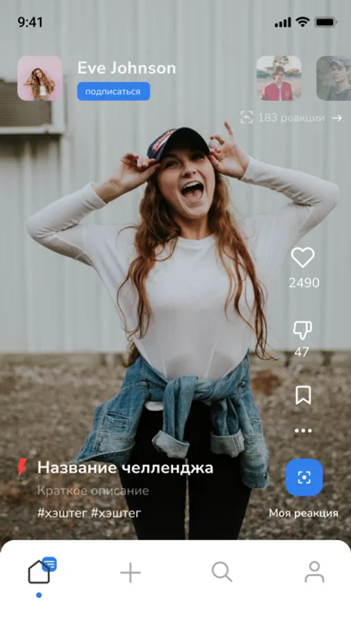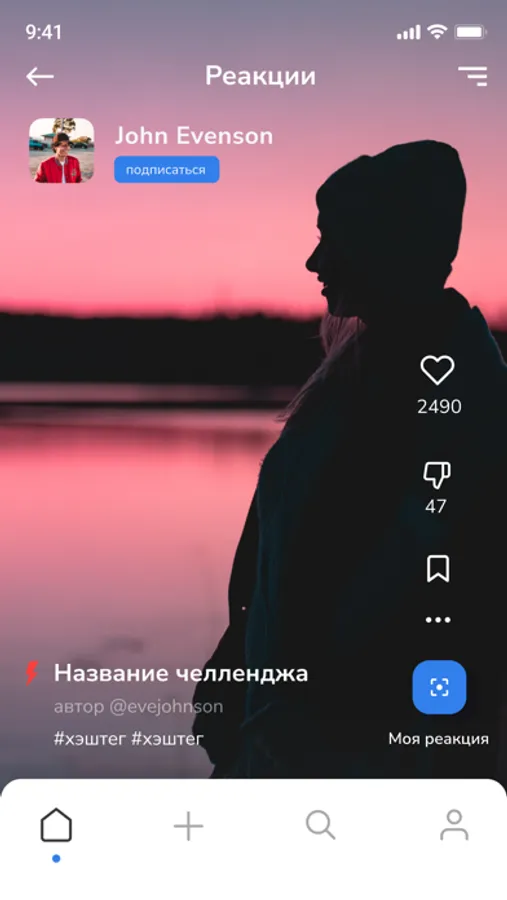 В приложении реализован новый тренд взаимодействия пользователей с видео-контентом для обмена мнениями в формате видео-реакций.