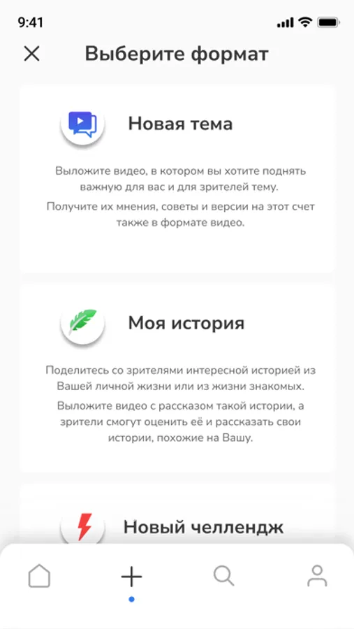 • рассказать интересную Историю и получить видео-реакции на неё, а также узнать о похожих историях от других пользователей;