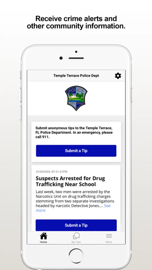 The Temple Terrace PD app provides citizens the ability to submit anonymous tips to the Temple Terrace, FL Police Department. The app also displays agency crime alerts and other organization web and social media content.