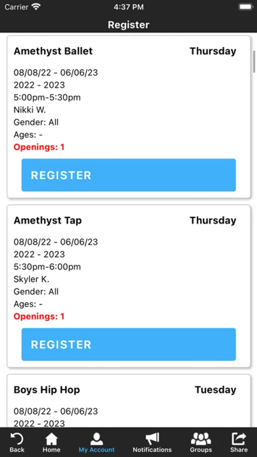 The Stompin Sensation Studio app allows you to manage your account with ease. You'll also receive important notifications about class changes, closings, registration openings, special announcements, and upcoming events.