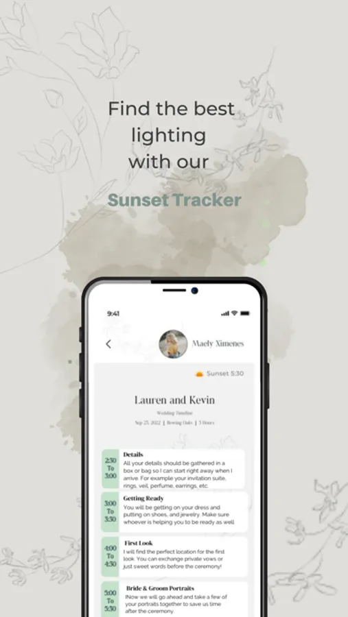 Plan your wedding timeline, create session shot lists, track the sunset, and collaborate with your clients, team, vendors, and venues all in one app. Timeline Pro lets you stay organized.