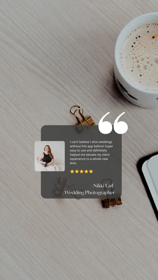 Getting started is easy! Choose from our beautiful timeline templates or upload your own. Save your timelines as templates and instantly import them to new client profiles, pre-loaded with your favorite shot list.
