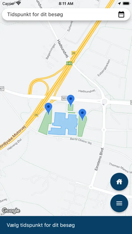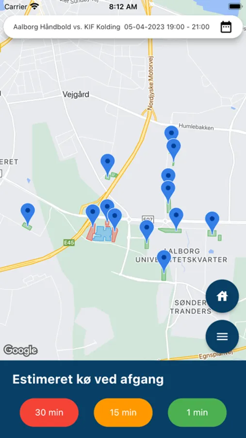 Vælg tidspunktet for dit besøg og se den forventede parkeringssituation. Appen viser dig alternative parkeringsmuligheder, hvor du vil kunne undgå op til 40 minutters kø ved afgang.