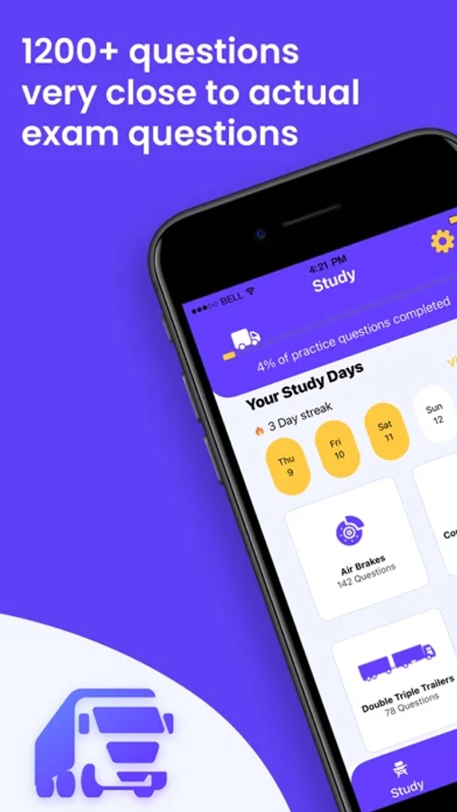 We know you’re busy so we designed the app to help you study on your terms. With the CDL Study Buddy, you can squeeze in a study session while you’re standing in line at the grocery store or when you have a few minutes before bed.
