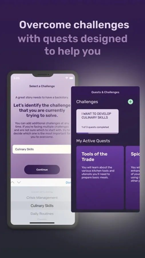 VAST Journey is a behavioral change app that helps you overcome challenges, achieve personal growth, and improve your overall quality of life. You can select from over 100 challenges to be guided through expert-designed quests that help you break down your challenge into manageable steps, recognize obstacles in your path, gather helpful tools and resources, connect with supporters, seize opportunities that await you, reflect on your progress, and develop character virtues and skills. You can also use VAST Journey to help another person overcome a challenge if they are unable to recognize or address it themselves.