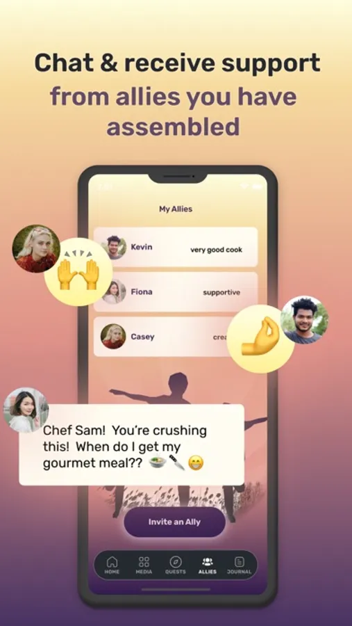 * Notifications to let you know right away when a friend accepts your invitation to be an “ally” on your journey