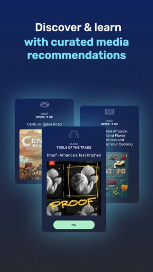 * Media: access expert-curated media and activity recommendations (to read, watch, listen to, play, interact with, etc.) that have been chosen specifically to guide you to success.