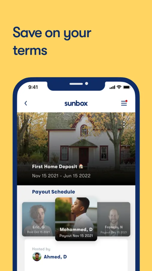 SunBox allows you to invite your friends and family to form a savings group with people you trust. You can help your friends and family while they help you to achieve your goals. SunBox creates a safe environment for you to save money.