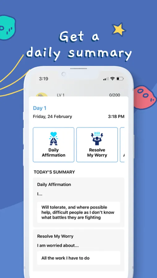 Summaries: Daily summaries at the end of each day to hold yourself accountable for your mental health!