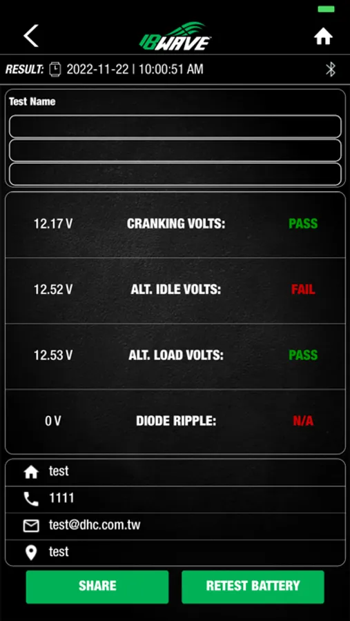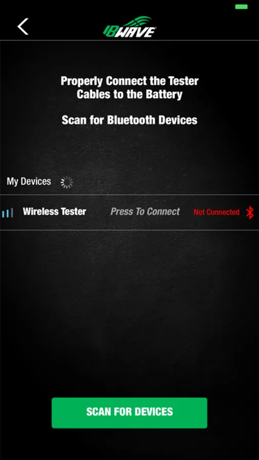 IB Wave Connect App easily syncs your Bluetooth Battery Testers to your smartphone or tablet. The wireless 6V/12V Battery Tester performs Battery Test, 12V Start-Stop Battery Test. It will also perform 12V/24V System Test. Simply download and install the IB Wave Connect App from APP Store to your mobile devices and experience the most advanced testing technology.