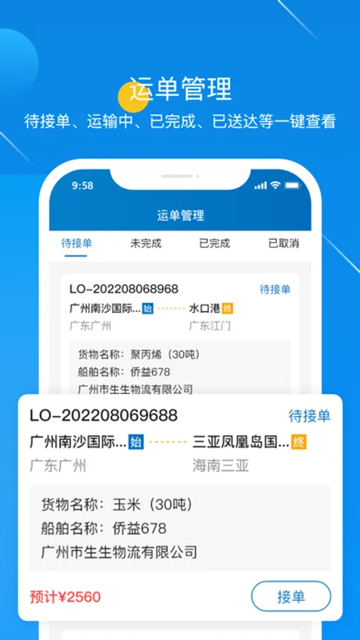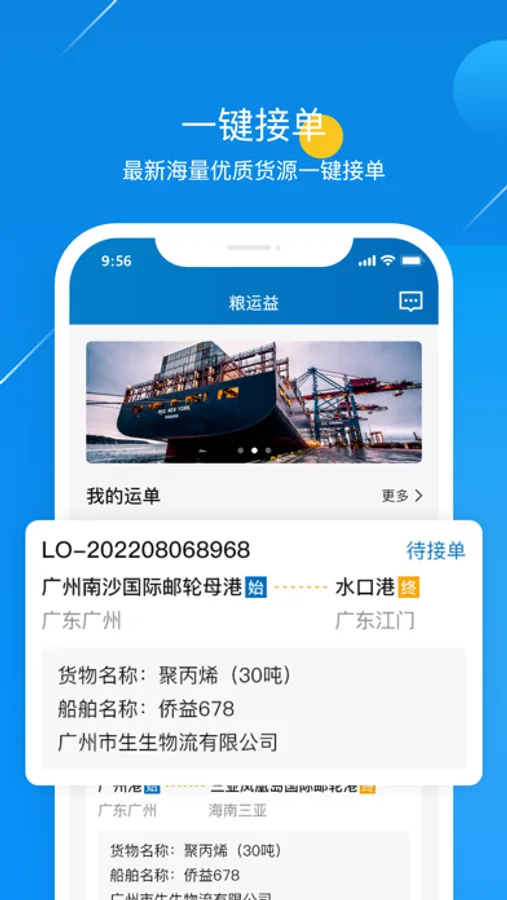 该系统是TMS管理系统船长端,用于船长接单,提货,送达,评价,跟踪货物以及船只轨迹,让船长能够更加及时的响应.