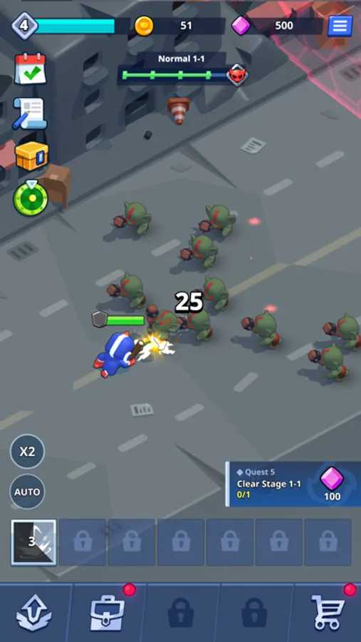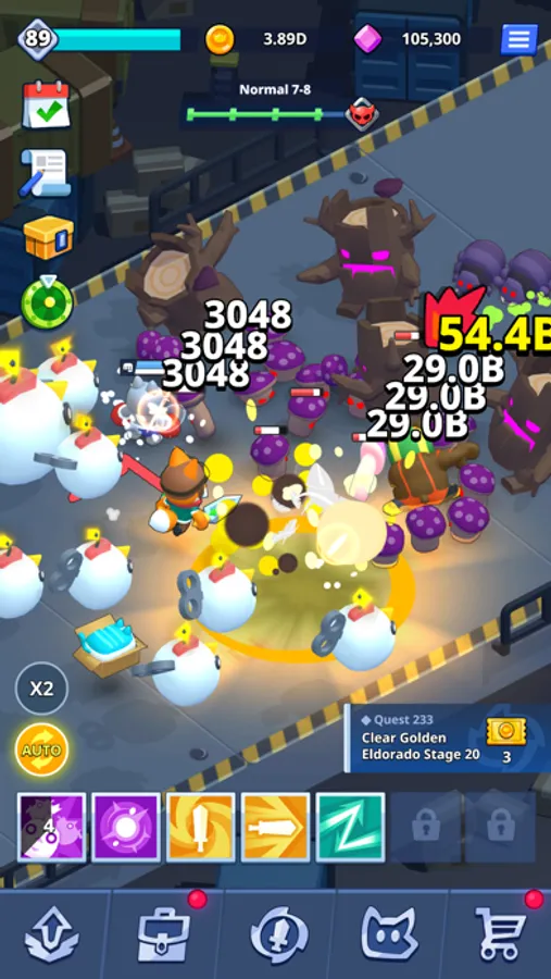 The game's idle mechanics ensure that your hero keeps progressing even when you're away, allowing you to return to bountiful rewards.